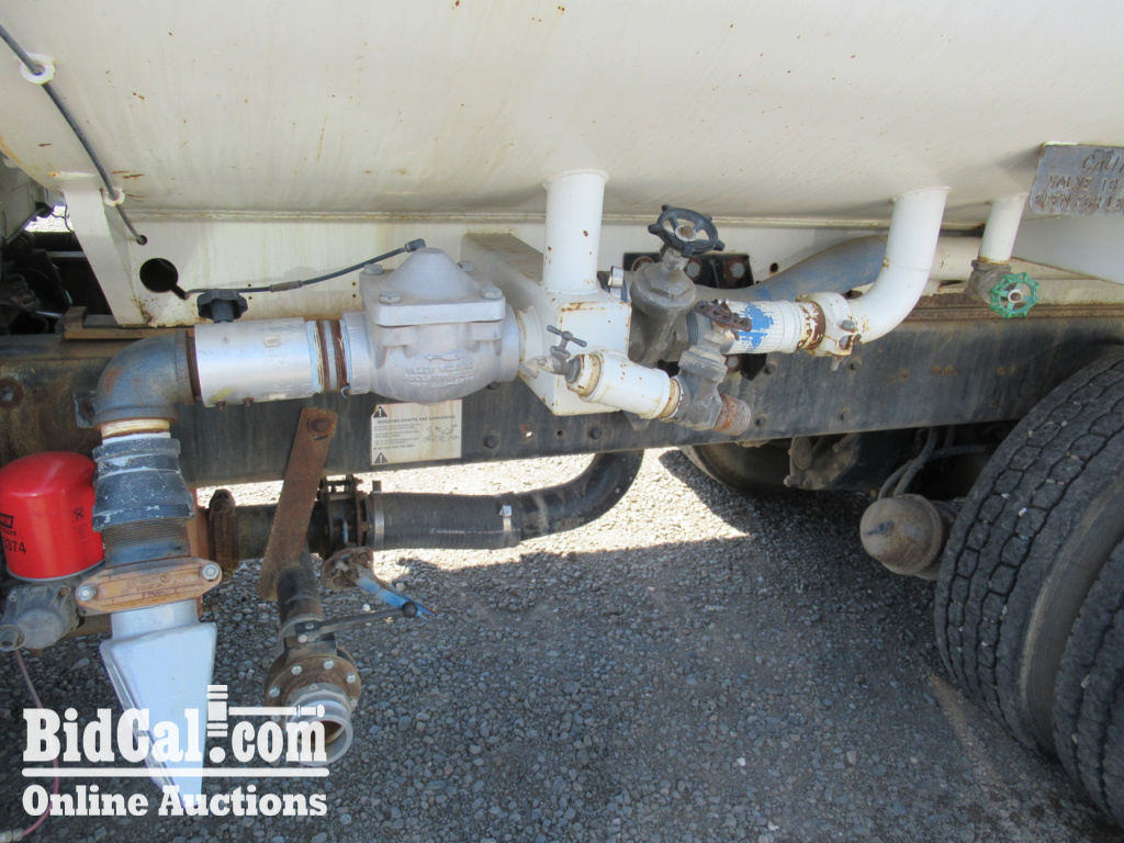 - International MaxxForce DT 6 Cylinder 7.6L Diesel 300 hp Engine (blown), 2012 US EPA Label, Exhaust Brake, Eaton Fuller RTF-8909LL Manual Transmission, 16000 lb Front Axle, 4000 lb Rears, 56000 lb GVWR, Air Ride Cab, 315/80R22.5 Front Tires, 11R22.5 Rear Tires, Hendrickson RT/RTE Series Walking Beam Suspension, 198 in Wheelbase, PTO, Valew Steel Tank, PTO Driven Pump, 7 ft 6 in, Spray Bar, Hose Reel, Front Spray, Rear Spray, Side Spray